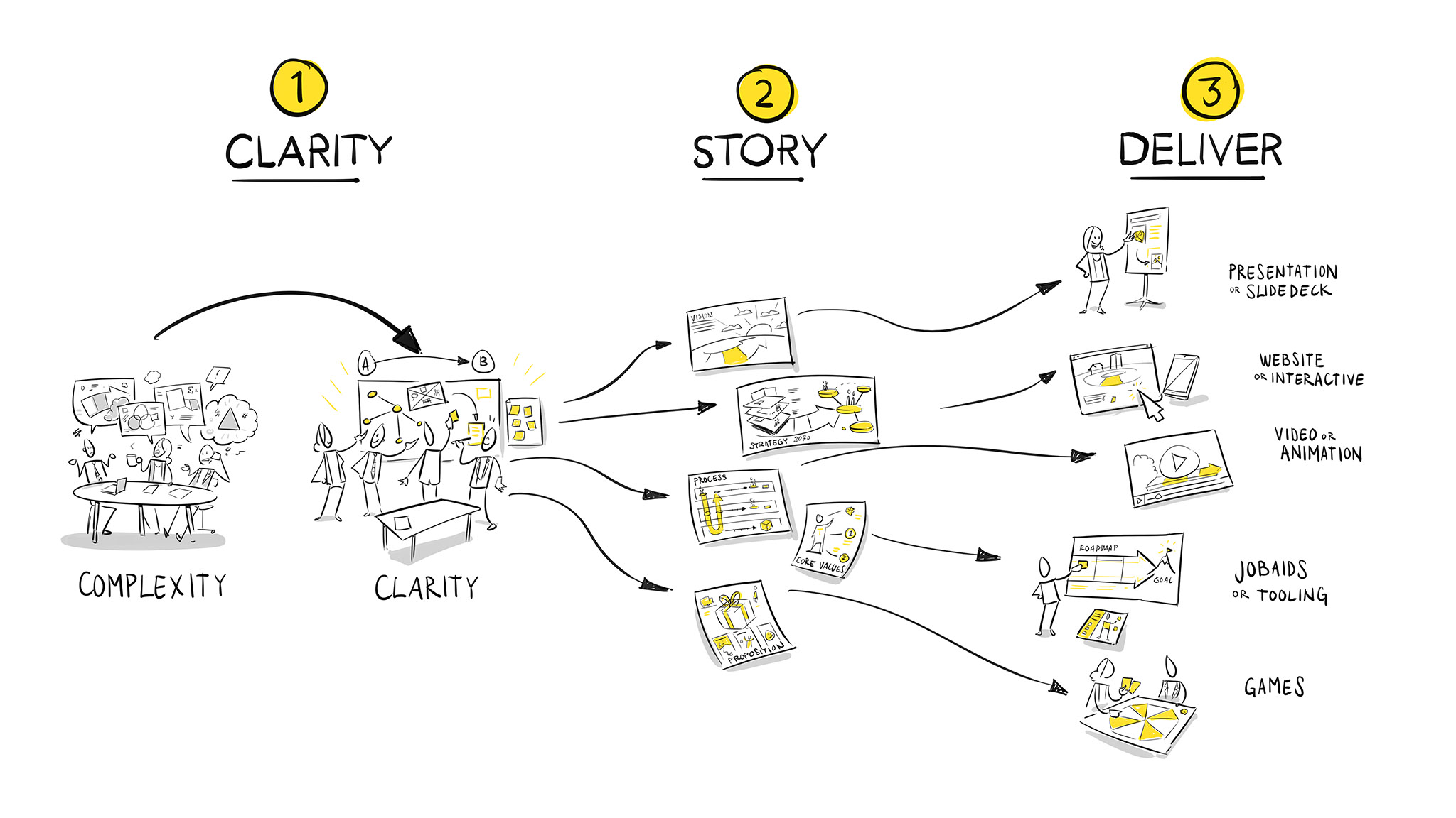 Communication Design is perfect for an individuals or teams who are having a hard time completely understanding or expressing a complicated idea. This could be a new concept, strategy or solution of any kind. Together we map the complexity, this also works well if you (or the team) do not have a complete understanding of your challenge yet. Together we develop the best way to explain the content to your audience.